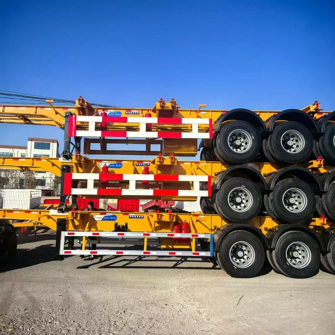 Lightweight container chassis for 20ft/40ft hauling. High-strength frame with 12 twist locks. Fast, safe & fuel-efficient.